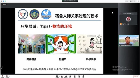 为切实做好疫情防控背景下员工心理健康教育和心理疏导工作,提升员工积极心理品质,4月10日晚,英国be365官网辅导员老师带领全体员工收看中国心理学会“疫情下宿舍人际关系处理的艺术”主题讲座。系列讲座由中国心理学会心理危机干预工作委员会以及全国高校心理委员研究协作组统筹组组织,此次讲座由中南财经政法大学余金聪博士担任主讲专家。