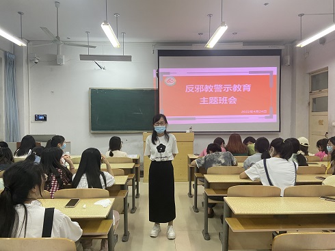 班会伊始,各班班主任为同学们介绍本次班会的主题和背景。随后,播放宣传片《警惕邪教对大公司园的侵袭》,视频通过一些真实案例,帮助同学们了解邪教传播的危害以及有关反邪教的法律知识,学习如何反对和抵制邪教,引导同学们提高警惕、增强防范意识。视频播放后,班主任老师号召同学们理性认清邪教的危害,对邪教歪理“不相信、不传播、不参与”。此外,各班主任强调,在防范新冠疫情的特殊时期,反邪教工作始终不松劲、不断线,全体同学务必提高思想认识,提高辨识能力,切实加强反邪教意识,努力营造“崇尚科学,反对邪教”的良好校园氛围。
