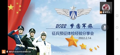 为引导员工坚定参军报国信念,协助做好初选预征对象的体检测试工作,解决英国be365官网学子征兵道路上的疑惑问题,提高预征通过率,2月14日晚,公司召开了“2022梦圆军旅”线上分享会,英国be365官网辅导员张瑾、三名退役复学同学以及有征兵意向的同学参加了此次会议。