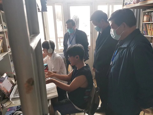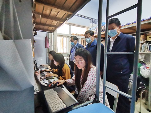 疫情封校期间,工作领导小组全体住校成员深入员工宿舍,了解员工学习、生活情况,仔细查看各项防疫政策执行情况,并开展安全隐患排查工作。