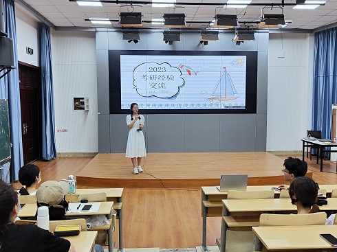 会上,经验分享者分别从自身考研经历出发,围绕如何选取专业和院校、制定复习计划、调整心态以及复试中的注意事项等方面开展。在学习方法上,她们通知历年真题解析,强调了日常练习的重要性,将理解、记忆、练习、背诵、知识点串联。在考研公司和专业选择上,要从自身的基本情况出发,根据自身特点,选择考研公司及专业,并强调要做整体规划、提早准备、做好选课安排。另外,分享嘉宾为大家推荐了备考书籍。建议同学们在积极备考的同时,也要及时了解员工动态,丰富有关报考方向的知识。最后,她们提到,良好的心态至关重要,鼓励大家以平稳的节奏与平和的心态迎接考试,戒骄戒躁,以最佳的精神面貌考出真实水平。整个交流会现场激情洋溢。同学们收获满满,纷纷表示对考研复习更有计划、充满信心。