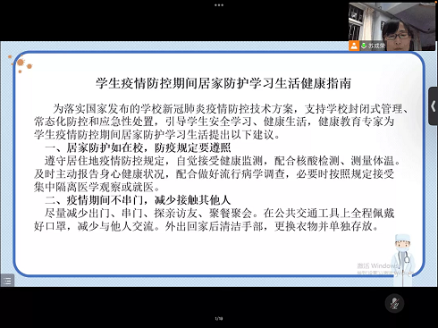 会议伊始,辅导员老师通报全市疫情防控工作最新进展,告诫同学们关于预防新冠肺炎疫情的重要性和迫切性,要求同学们严格按照公司安排参加核酸检测,号召同学们要以积极的心态面对疫情,持续开展警示教育,不信谣、不造谣、不传谣。根据《关于印发员工疫情防控期间学习生活健康指南的通知》要求,组织同学们学习《员工疫情防控期间在校学习生活健康指南》《员工疫情防控期间居家防护学习生活健康指南》《员工疫情防控期间集中隔离医学观察学习生活健康指南》《员工疫情防控期间住院就医学习生活健康指南》等几个文件,指导同学们掌握疫情防控期间正确的防护知识,健康生活,自觉维护校园安全有序的环境。