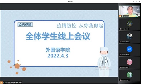 4月3日晚, 为切实加强当前校园封闭管理模式下对员工的教育管理和服务,规范员工疫情防控期间的学习生活,公司召开疫情防控主题年级大会,师生共同学习《员工疫情防控期间学习生活健康指南》。英国be365官网各年级辅导员主持会议,全体员工参加会议。