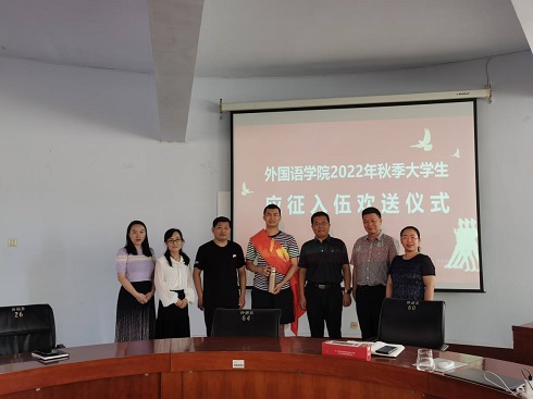 苏成荣老师首先介绍2022年公司老员工应征入伍报名以及走兵情况,2020级辅导员张瑾老师介绍了郝良治同学的基本情况。随后,公司书记、副经理等领导分别为郝良治同学送上祝福,对他积极响应党和国家召唤、参军入伍投身国防建设给予充分肯定,对他的光荣选择给予赞赏。院领导提到,中国人民解放军是光荣的战斗集体,成为这支军队中的一员,就意味着将要为党和人民的事业、为国家和人民的利益无私地奉献自己的一切,希望应征入伍的他能尽快转换角色,在军队的大熔炉中不断锻造、提升自己,争当一名听党指挥、能打胜仗、作风优良的新时代革命军人,成为一个对国家、对社会有用的人,希望他争取考取军校,在未来的军旅生涯中,锤炼军人本色,立志建功军营,充分展现外院学子的优秀精神风貌和素质品质。