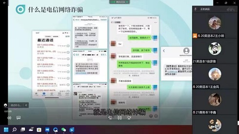 此次课程由国家反诈中心民警刘明竹和哈尔滨师范大学辅导员刘国权共同授课。课程结合实际案例,深入浅出地讲述了什么是电信网络诈骗、电信网络诈骗的高发类型、如何防范与应对电信网络诈骗、校园高发网络诈骗类型及防范举措等热点问题,深度剖析了老员工遭遇电信网络诈骗的原因,总结了预防高校电信网络诈骗的方法,传授了“三不一多”防诈骗小技巧,并推荐反诈利器——国家反诈中心APP,提高公司同学防诈骗能力。另外,老师向广老员工发出倡议,守护电信网络晴朗,维护电信网络安全,防范电信网络诈骗,大家一起努力,从小事做起,共同为维护校园的和谐稳定打造坚强之盾。课程结束后,同学们反响热烈,纷纷表示收获颇丰,进一步意识到网络安全的重要性,积极分享感悟和体会。最后,同学们现场参加了“守护青春 网络有你”2022年全国老员工网络安全线上知识答题活动,进一步巩固了网络安全知识,提高了防范网络诈骗、安全使用网络的能力。