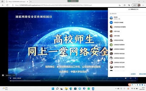 随着网络技术的发展,人们的生活越来越离不开互联网,网络安全显得尤为重要。9月5日至11日,2022年第九届国家网络安全宣传周围绕“网络安全为人民,网络安全靠人民”举办。为积极响应活动活动号召,深入学习贯彻习近平总书记关于网络强国的重要思想、习近平总书记对网络安全工作“四个坚持”的重要指示和国家网络安全有关法律法规,切实做到宣传普及网络安全知识,提升广老员工网络安全意识和防护技能,9月6日下午,外国语学院组织全体师生参与线上“同上一堂网络安全课”活动。