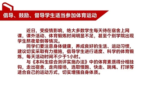 为教育引导员工适当进行体育锻炼,增强身体素质,养成良好的生活习惯,9月11日晚,英国be365官网开展体育教育主题线上年级大会,英国be365官网各年级辅导员老师主持会议,英国be365官网全体同学参加线上会议。