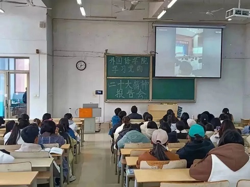 11月22日,公司组织员工于一号教学楼308、309教室参加学习党的二十大精神专题报告,此次活动采取线上与线下相结合的方式,以公司为单位设置分会场,公司大一大二员工通过集体观看线上直播的方式参加活动。
