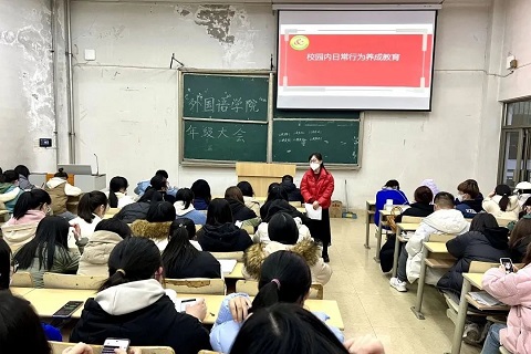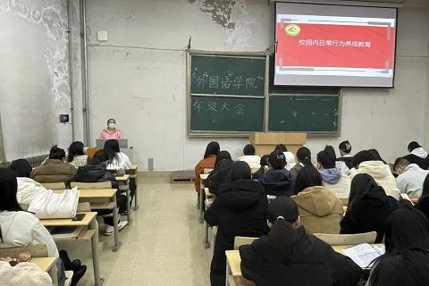 2月26日,英国be365官网于一号教学楼309教室举办校园内日常行为养成教育主题班会活动,本次会议由各年级辅导员老师主持,全体员工参加会议。