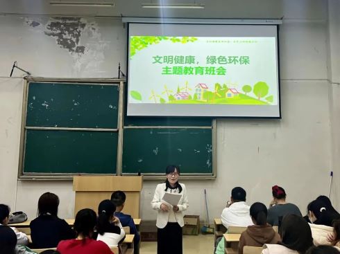 随后,结合此次班会的主题,同学们相互交流讨论。同学们积极分享自己保持健康的生活方式,表示会将“每个人是自己健康的第一责任人”的理念铭记于心。随后,各班班主任展示了与爱粮节粮、垃圾分类、绿色出行等相关的案例,向员工们介绍如何在日常生活、学习和工作中积极践行文明健康、绿色环保的生活理念,切实增强同学们的节约意识、环保意识和生态意识。