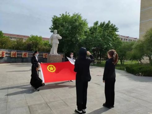刘文馨同学带领张耘滋同学面向团旗庄严宣誓。鲜艳的团旗下,新团员,举起右手庄严宣誓:“我志愿加入中国共产主义青年团,坚决拥护中国共产党的领导,遵守团的章程,为共产主义而奋斗......”青春誓言,高昂雄浑,表达了张耘滋同学对共青团组织的无限向往和为团组织增光添彩的豪迈激情。在热烈的掌声中,新老团员代表做了发言,要在各方面不断提高自身素质和修养,为团组织增添光彩。