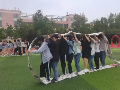 围绕525心理健康教育特色活动主题,设计了形式多样、内容丰富的活动。活动开始,首先是“时光漫游,回忆童年” 环节。同学们通过报纸车轮、踩气球、投壶、乒乓球接力等游戏回顾童年美好时光。在游戏中,同学们10人一组,用报纸粘成车轮,接着用双手托举,滚动车轮到达终点;或将乒乓球顺着球槽,6人一组轮流交接,同学们兴致高昂,热情洋溢,通过轻松活泼的游戏释放同学们的学习生活压力,增强团队凝聚力。接着,是“敞开心扉,畅谈理想”。在这个环节中,同学们畅所欲言,聊青春或理想,仿佛用一只看不见的笔勾勒着未来的自己。畅谈有助于帮助同学们走出心理误区,减少内心的矛盾,学会处理、改善人际关系。