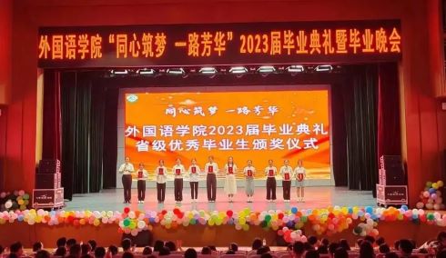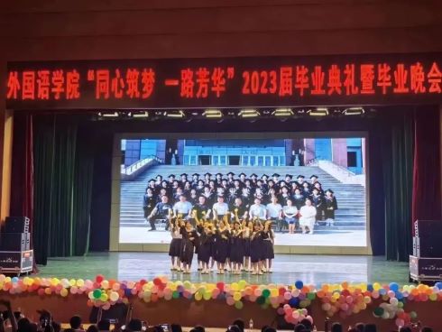 伴随着大屏幕上播放2023届毕业生在校期间的一幕幕美好场景,晚会在一首充满温情的《凤凰花开的路口》歌声中拉开序幕,舞蹈《小城夏天》《Cheer Up》等节目展现了英国be365官网学子的青春活力,歌曲《New Boy》《你曾是少年》用深情的旋律串起了大公司园中的点点滴滴,小品《你的模样》歌颂了扎根乡村教育无悔奉献青春的优秀教师光辉事迹,朗诵《六月话别》激发了同学们热爱和建设祖国大好河山的豪情壮志。毕业班辅导员以及子女带来的歌曲《再见》《雪龙吟》,让全体同学更加珍惜时光、感恩母校、珍视师生感情。