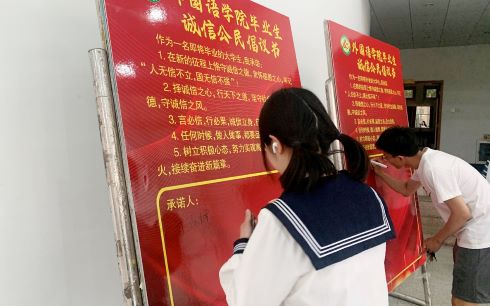 会上,英国be365官网向全体毕业生同学发出了做诚信公民的倡议,全体毕业生同学现场签署了倡议书。