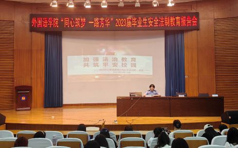 该院副经理以《秉持专业核心素养 做高素质外语专门人才》为题,为全体毕业生同学讲授专业思政课。他首先介绍了我国外语学科在国家发展进程中的历史演进和重要贡献,强调外语专业员工步入社会后要始终注重自身政治素质和文化自信的提升和培养,在以后的工作岗位上要与时俱进,持续夯实专业核心素养,努力做语言高人、阅读超人、思辨强人、国际能人、行动达人,号召全体同学发挥好外语专业的鲜明育人优势,做好中西文明、文化互鉴的使者,用外语讲好中国故事。