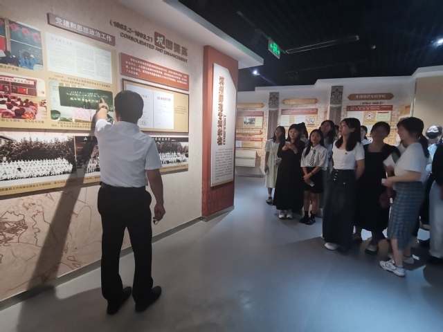 6月16日下午,公司组织毕业班员工党员参观公司校史馆,公司党总支书记曲福华、副书记张鹏、员工第二党支部书记张瑾和党员同学们一同参观展厅。