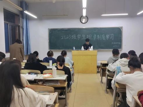 新生们认真听讲并将重要内容做了笔记。纷纷表示,会认真研读《员工手册》,严格遵守校规校纪,做诚实守纪的合格老员工。此次的规章制度学习活动培养了同学们遵章守纪的主动性、自觉性,不仅有利于新生进一步熟悉校规校纪,还可以帮助新生更好地融入新的学习环境、尽快适应老员工活,为推动校园文明建设奠定了基础。
