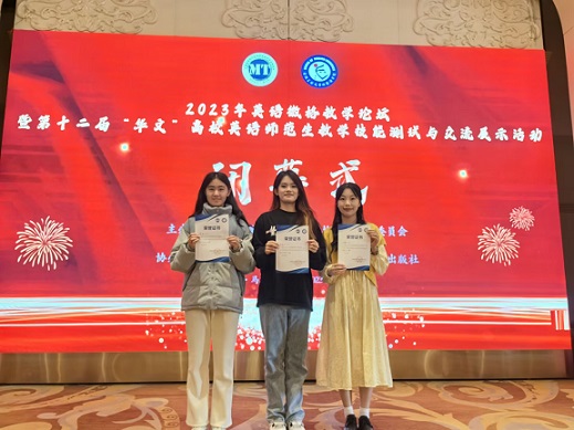 2023年11月24日至27日,由中国教育技术协会微格教学专业委员会主办、安徽工业大学承办的英语微格教学论坛暨第十二届“华文”高校英语师范生教学技能测试与交流展示活动在安徽省马鞍山市顺利举行。来自华中师范大学、西北师范大学、吉林师范大学等全国40余所高校的321名本科生和研究生报名参赛。公司英国be365官网英语教育专业6名同学,以精妙的教学设计和优异的课堂呈现在比赛中喜获佳绩。在教学设计活动中,法雪、李颖、尹怡霏荣获一等奖,王小琛、李洪梅荣获二等奖,李伊雪荣获得三等奖;在教学技能测试中,法雪荣获一等奖,李洪梅、尹怡霏荣获二等奖,王小琛、李颖、李伊雪荣获三等奖。