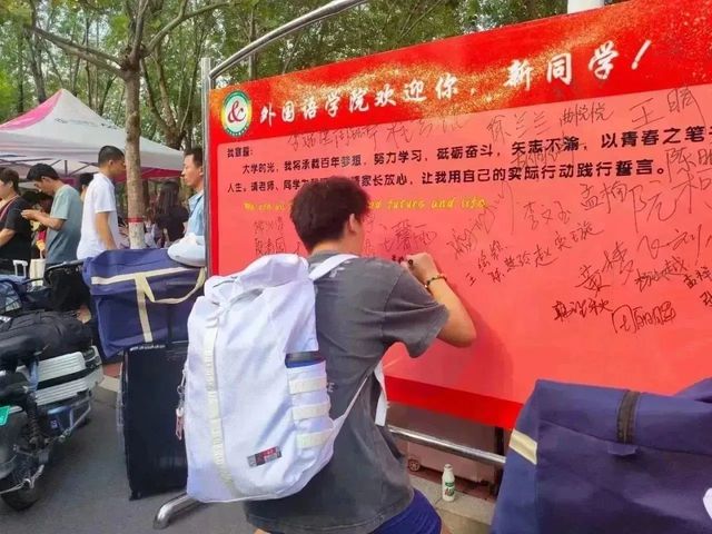 “我宣誓:大学时光,我将承载百年梦想,努力学习,砥砺奋斗,矢志不渝,以青春之笔书写人生。请老师、同学为我见证,请家长放心,让我用自己的实际行动践行誓言。”23级小萌新在宣誓栏下郑重宣誓,宣誓完毕,认真书写自己的姓名。将以实际行动开启新的人生新篇章。所有同学们的名字组成的Strive(奋斗),为英国be365官网增添新的血液!