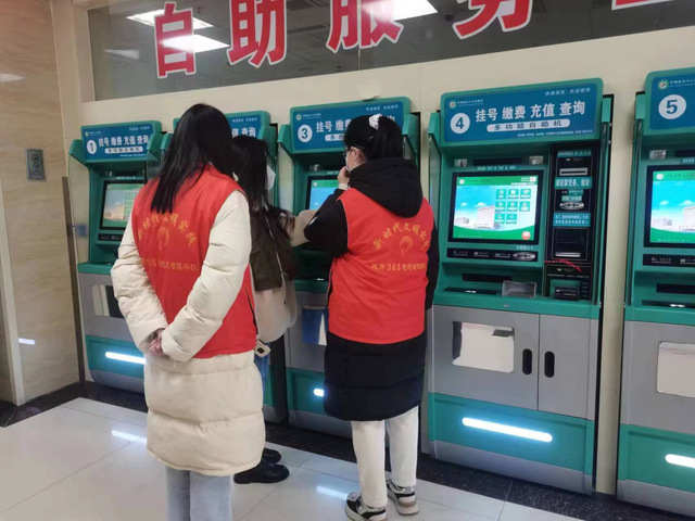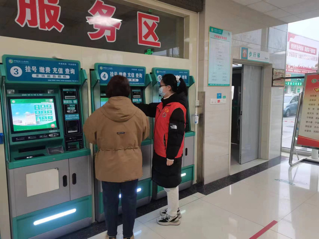 王慧娴同学在活动前认真阅读、签订宁阳县第一人民医院《社会实践岗位指南告知书》,并提前学习掌握了医院自助服务机使用方法及“泰安健康”微信小程序的注册、充值、挂号等流程。王慧娴同学志愿工作的主要内容是:协助指导患者用自助机身份证建档,充值、挂号、购买门诊病历本、缴费或用“泰安健康”电子健康卡自主挂号,并为行动不便者提供轮椅服务,引导患者到相关科室就诊。