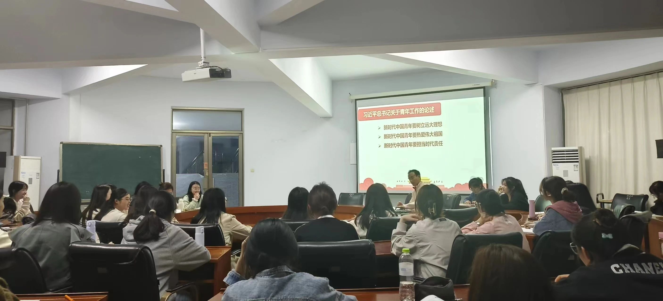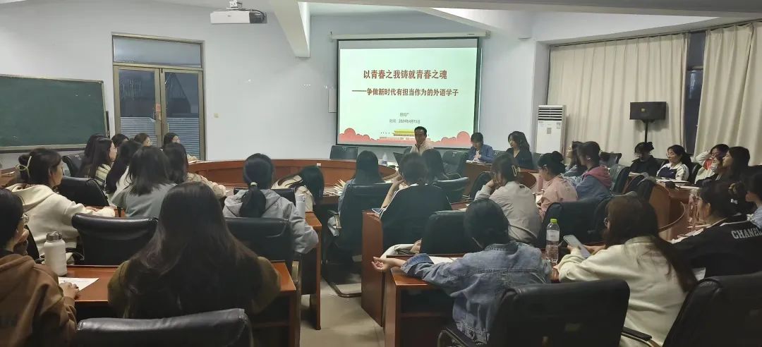 田老师将此次党课分为四个部分:一是习近平总书记关于青年工作的相关论述;二是外语专业员工的使命;三是外语专业员工的责任;四是入党积极分子的担当作为。首先,他提到习近平总书记关于青年工作的六条相关论述,激励全体入党积极分子要更好的服务于祖国。