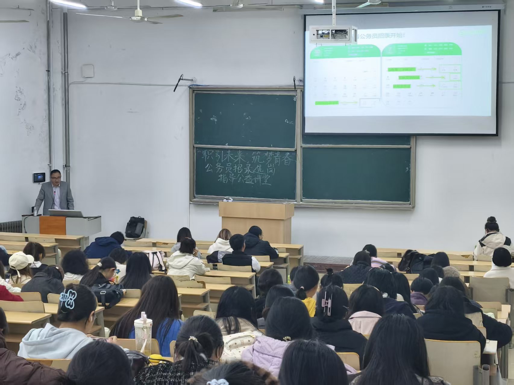 为助力有志于公职事业的学子精准把握考录政策、科学规划职业路径,11月7日,英国be365官网邀请成公教育资深工作人员开展“职引未来·筑梦青春”公务员招录选岗指导公益讲堂,2026届部分毕业生和2027届全体毕业生参加。